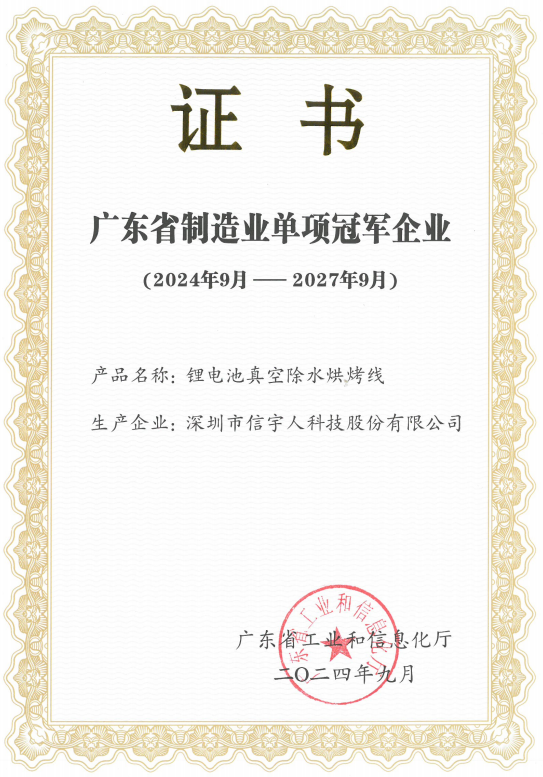 英国威廉希尔凭借此前申报的“锂电池真空除水烘烤线”智能制造装备,被广东省工业和信息化厅授予广东省制造业单项冠军企业荣誉。